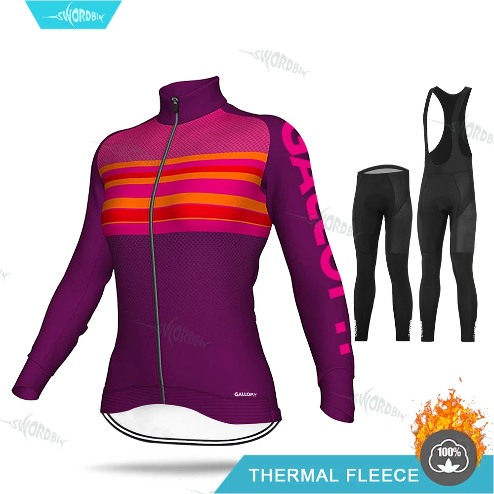 Lady Cycling Jersey Long Sleeve Set Women Winter Cycling Clothing ALEing Fashion Road Bike Warm Shirt Pro Winter Thermal Fleece